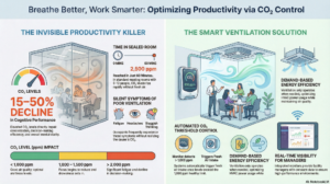 In modern, airtight buildings, CO2 levels can quickly exceed 1,500 ppm, leading to “Sick Building Syndrome.” By maintaining levels below 1,000 ppm, you ensure a safer, more productive environment for everyone.