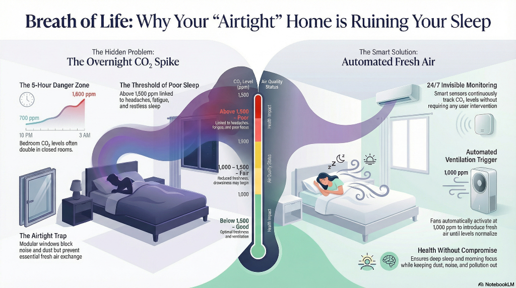 In modern, airtight buildings, CO2 levels can quickly exceed 1,500 ppm, leading to “Sick Building Syndrome.” By maintaining levels below 1,000 ppm, you ensure a safer, more productive environment for everyone.